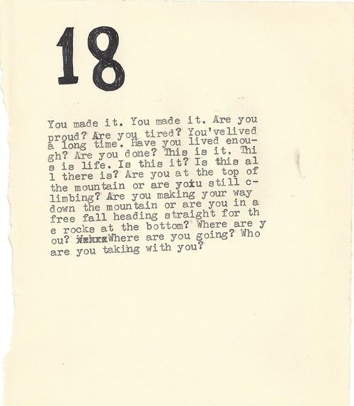 - Take a deep breath of this feeling of freedom and welcome to the world of adults! Eighteen is the age of discovery. Enjoy your journey!