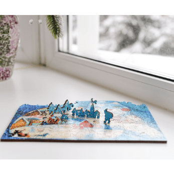 A beautiful winter-themed puzzle will brighten up the evening and distract you from gadgets. Amazing cutting of wooden parts (180 pieces) will delight everyone who decides to assemble the whole picture. A wonderful puzzle with a winter cat will be a good gift for any occasion!