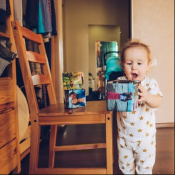Soft hypoallergenic cubes will help to keep bright photos and turn them into a fun game because you can throw them. There are 4 dice in the set, on which 24 photos can be placed.