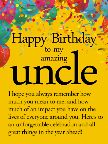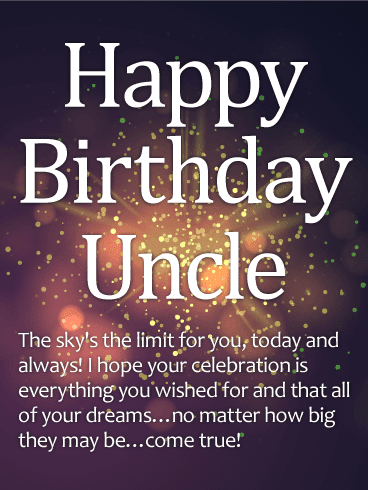 - Today is the birthday of my beloved uncle! I congratulate you with all my heart and sincerely wish you a fair wind, clear skies over your head and great luck! Let your spirits and strength always be on your side, so that the joy of life will be your trump card. Know how to get things done and not back down from trouble! Every moment will be filled with luck in fate!