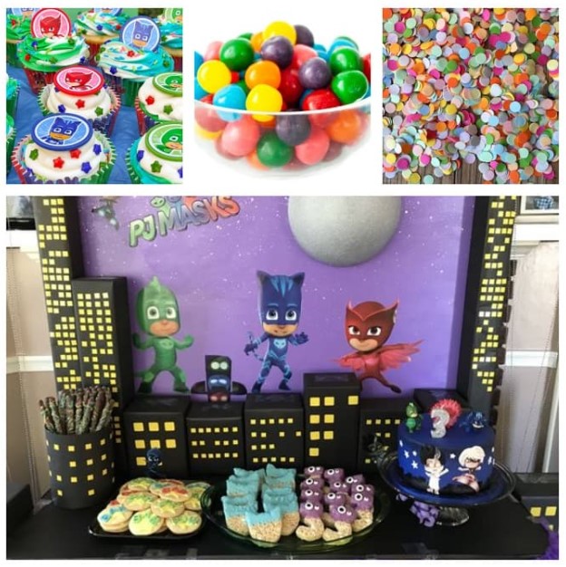 Does your child really like decorations? How can you not buy some colored confetti to create a sparkly and sparkling environment, just the way your child likes it? These are simple but effective DIY Pj Mask birthday party ideas for a birthday.