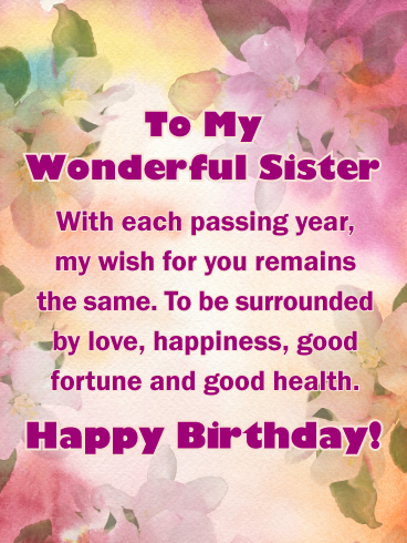 - I feel very lucky to be able to say that you are my sister, and I want you to know that on your Birthday. Congratulations, enjoy, and don’t forget the most important thing, smile!